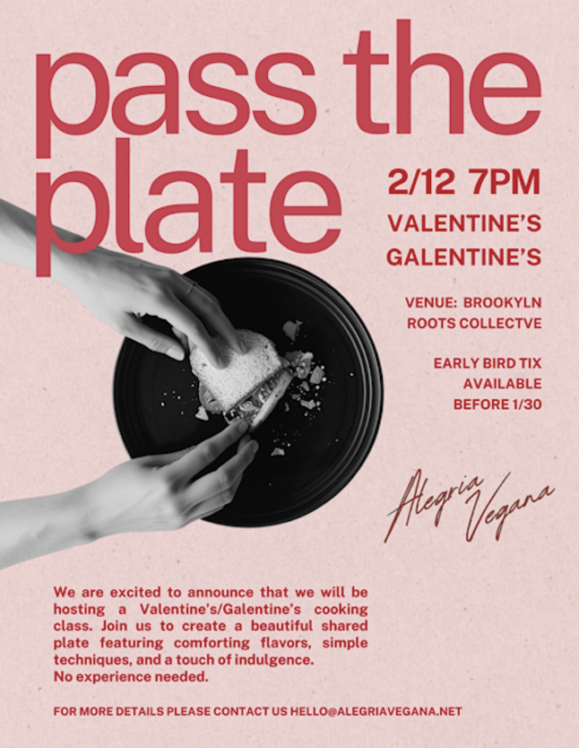 Enjoy A Vegan Valentine’s & Galentine’s Cooking Experience at Brooklyn Roots Collective’s pass the plate Dinner on 2/12