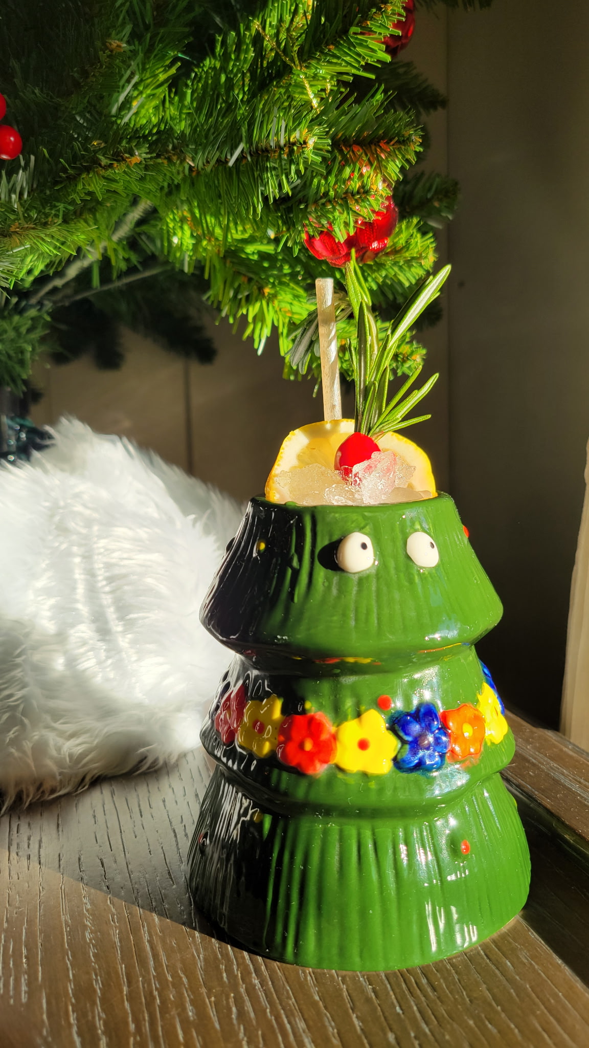 A holiday twist on a tiki classic with gin, cranberry, citrus, and warm spice notes—tropical but winter-ready.